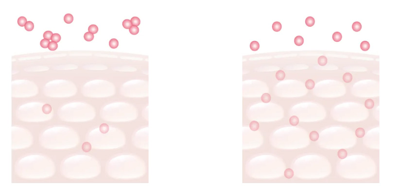 蝦紅素不溶於水,很難添加到化妝品中,但 FUJIFILM 利用獨家納米技術成功研發出「納米蝦紅素」並添加到化妝品中,透過納米化成功穩定地深入滲透到角質層的縫隙中,到達皮膚的每個角落。
