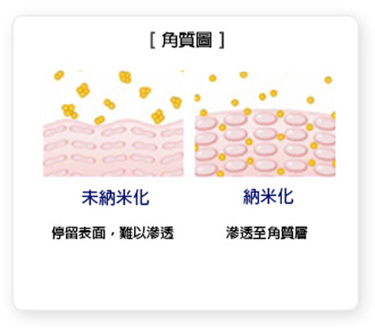 納米技術能穩定護膚成分,加強滲透並於角質層吸收。