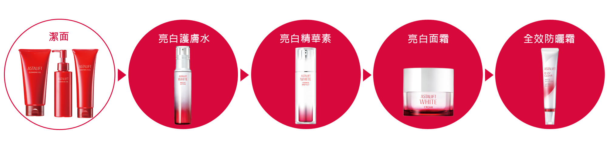 【VIP WEEK限定優惠】ASTALIFT White 深層美白亮肌組合組合優惠$1,500 (原價$2,676) 潔面後4步驟,深層重建儲水牆,擊退及抑制黑色素,重現由內透出的亮白水光- 美白啫喱保濕精華 60g- 抗黃透光亮白護膚水 130ml- 臻粹嫩白抑斑精華 40ml- 抗黃透光亮白面霜 30g- 亮白面霜 5g X4件- 亮白護膚水18ml X2支